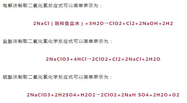 上述反應(yīng)式除電解法外,原料并不單一,如雙氧水可以用蔗糖代替,但反應(yīng)式會相應(yīng)改變,氯酸鈉也有使用亞氯酸鈉作為原料的。